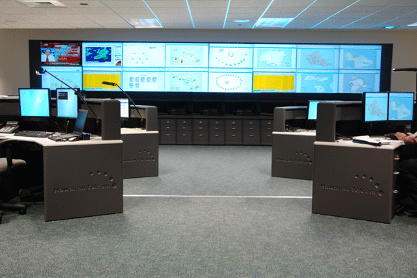 See turnkey console furniture and video display system for emergency operations.